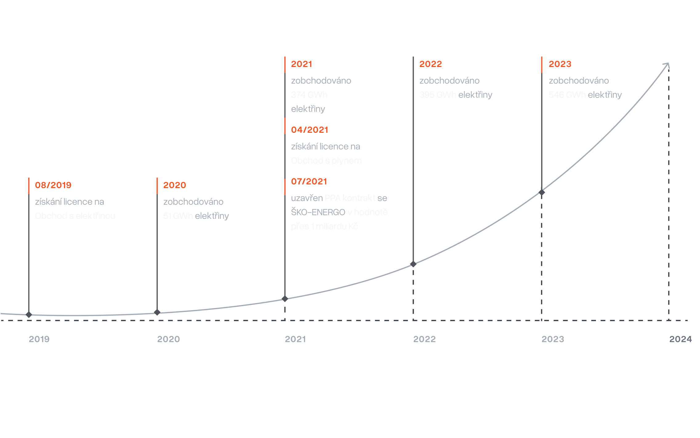 Jsme český obchodník s energetickými komoditami a poskytovatel agregace flexibility. Našimi aktivitami podporujeme a rozvíjíme trh s elektřinou z obnovitelných zdrojů. Spolupracujeme s oborovými asociacemi, jako je Komora obnovitelných zdrojů energie, Solární asociace nebo CZ Biom. Naší činností se také aktivně podílíme na tvorbě legislativního rámce v energetice s ohledem na zájmy výrobců elektřiny.
