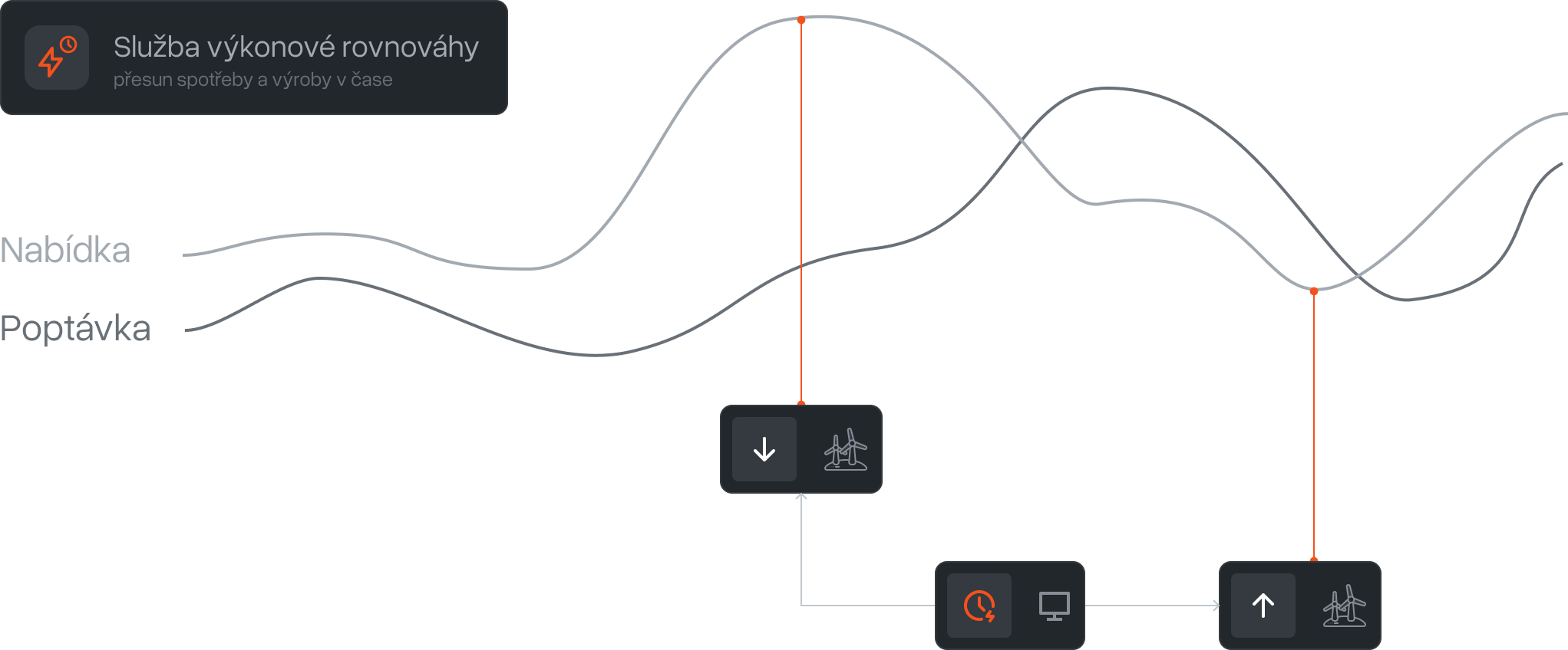 Sdružujeme energetická zařízení do jednotlivých agregačních bloků, kterými napřímo poskytujeme společnosti ČEPS služby výkonové rovnováhy.